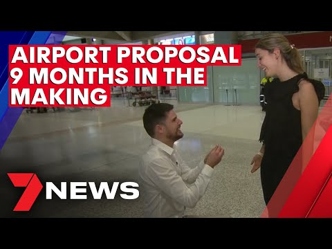 It’s not every day you see a proposal at the baggage carousel, but that’s what passengers at Brisbane Airport were treated to on Saturday. Jake Barwick hadn’t seen his partner Lila since February, and surprised her by popping the question. Subscribe to 7NEWS for the latest video » https://7news.link/YTSubscribe Connect>>>