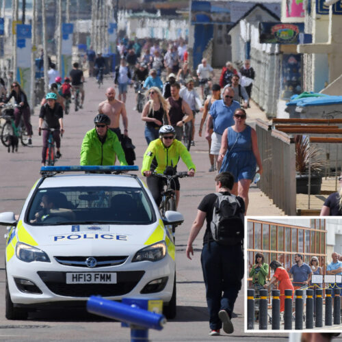 BRITS today hit parks and DIY stores despite repeated warnings to stay home over fears restless people are breaking coronavirus lockdown. Pictures show queues of people snaking around car parks after hardware stores were labelled “essential” during the coronavirus crisis. 21 A police car on patrol in Bournemouth today as>>>