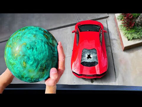guy drops bowling ball on loud lamborghini…