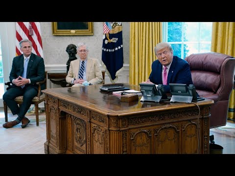 Moments ago, President Donald Trump met with Senate Majority Leader Mitch McConnell and other Republican leaders to discuss the next coronavirus relief bill for Americans. » Subscribe to NBC News: http://nbcnews.to/SubscribeToNBC » Watch more NBC video: http://bit.ly/MoreNBCNews NBC News is a leading source of global news and information. Here you>>>
